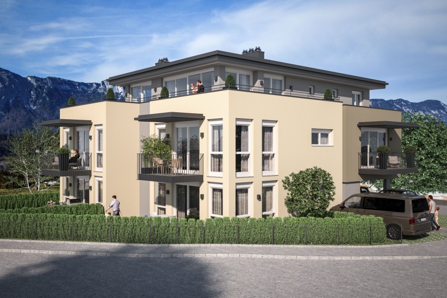 In der Kastengstatter Straße 18 in Kirchbichl entsteht eine kleine Wohnanlage mit sechs Einheiten zwischen 49 und 99 m² in fußläufiger Entfernung zum Zentrum. Das Gebäude wird über eine zentrale Pelletsanlage beheizt und wird im Sommer 2025 fertiggestellt. Die Penthouse-Wohnung bietet eine große Dachterrasse und einen sonnigen Blick nach Westen.